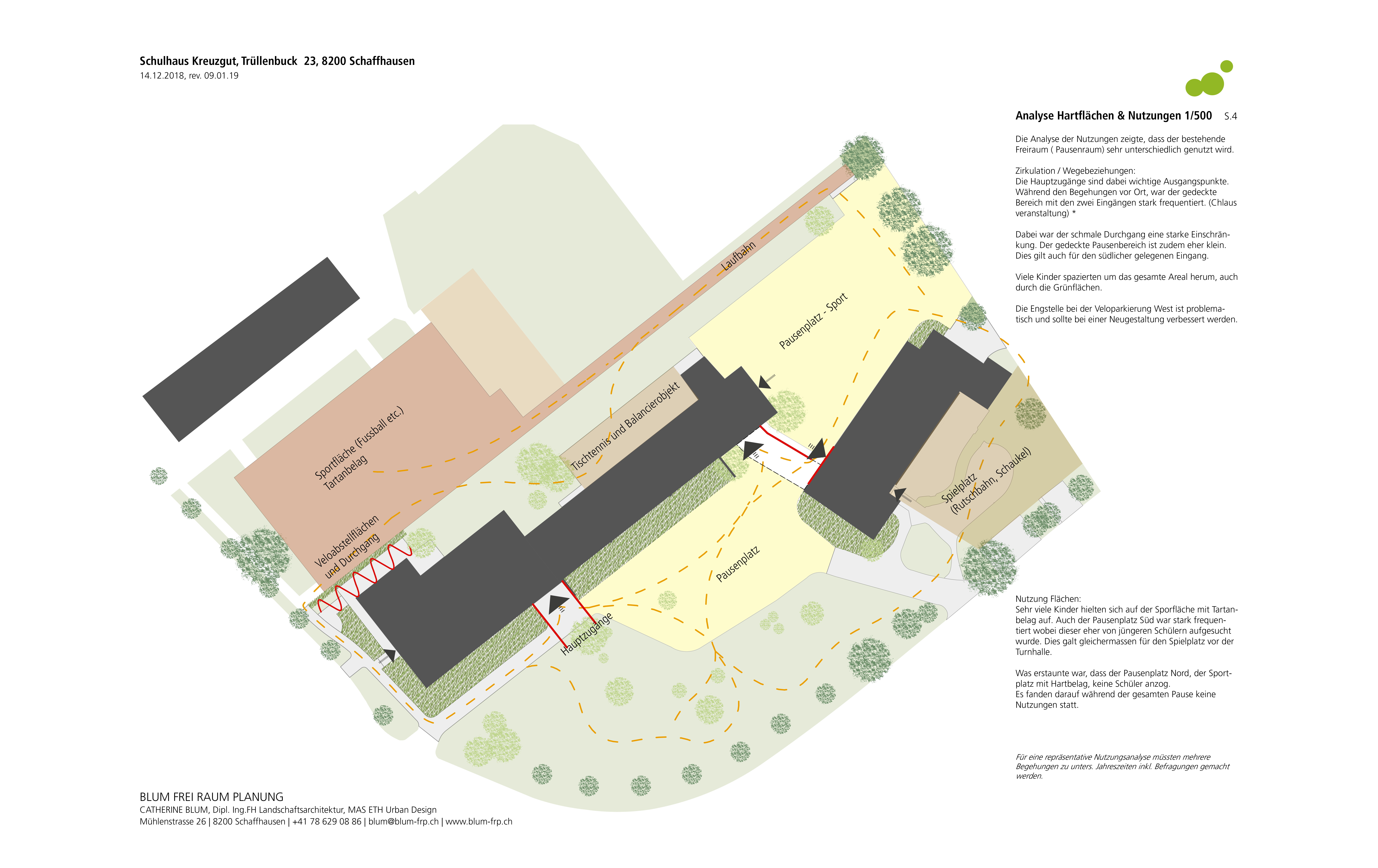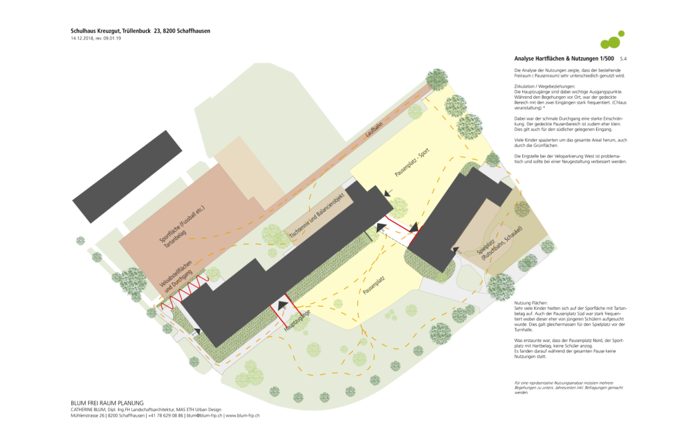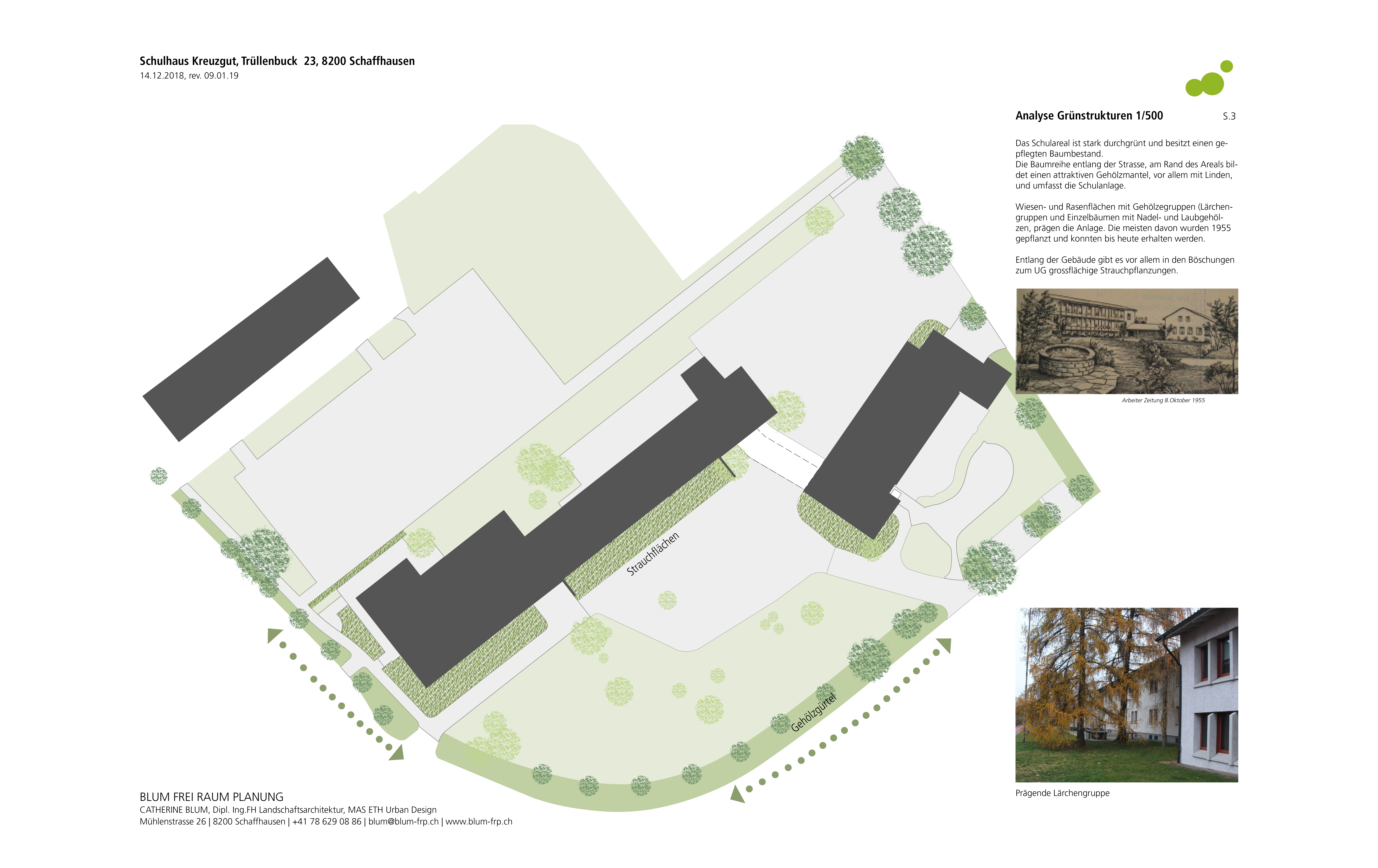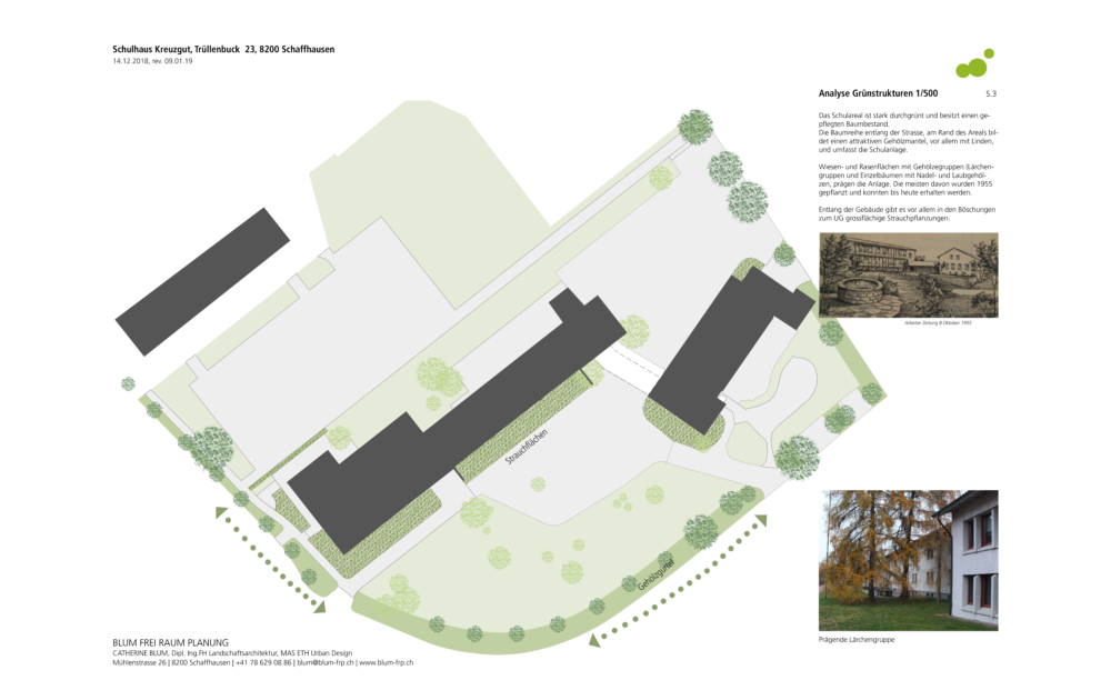 Die bereits durchgeführte Analyse von BLUM FreiRaumPlanung wurde von Bösch Landschaftsarchitektur übernommen und durch weitere Informationen ergänzt und fotografisch sowie durch Plandarstellung dokumentiert.