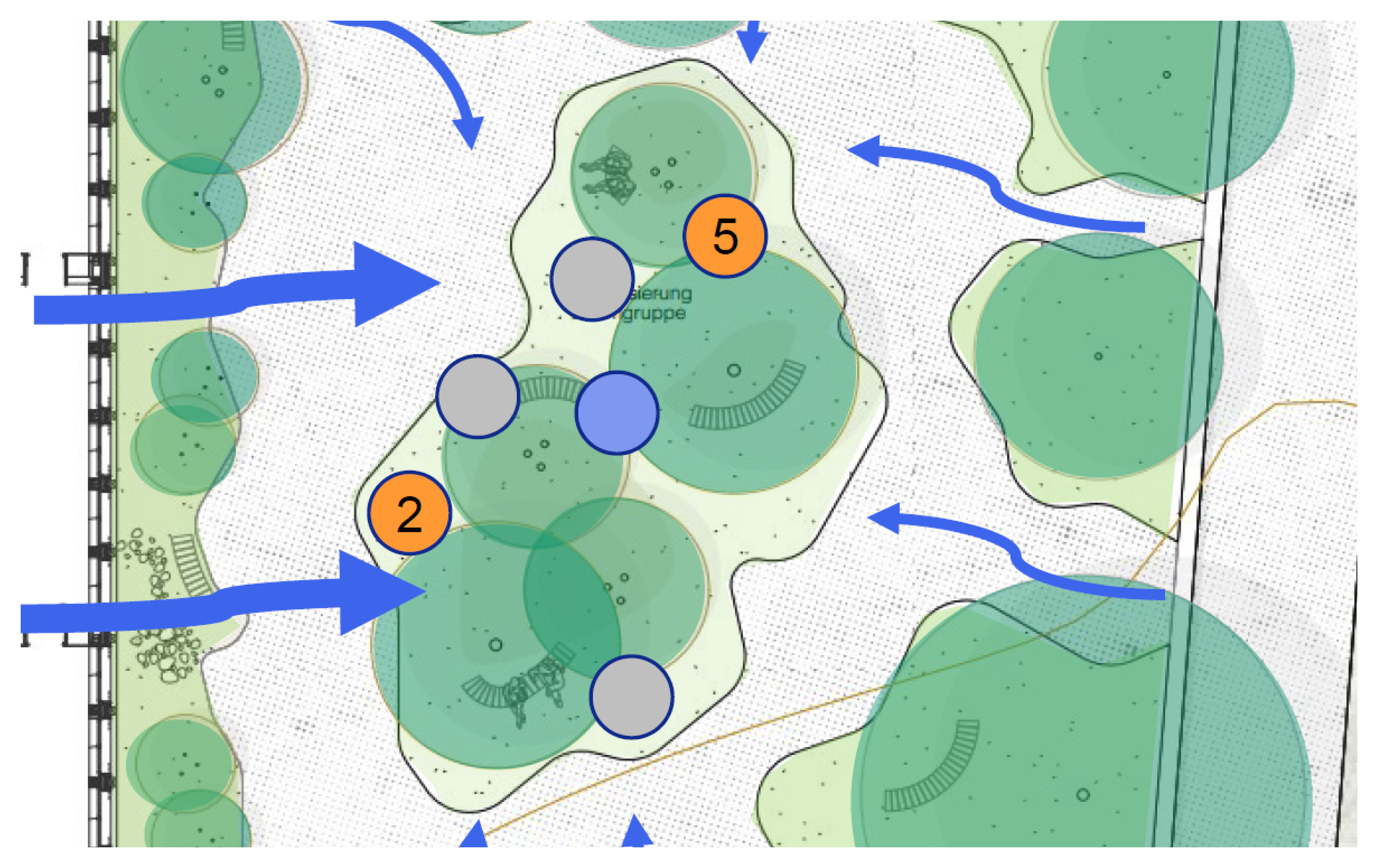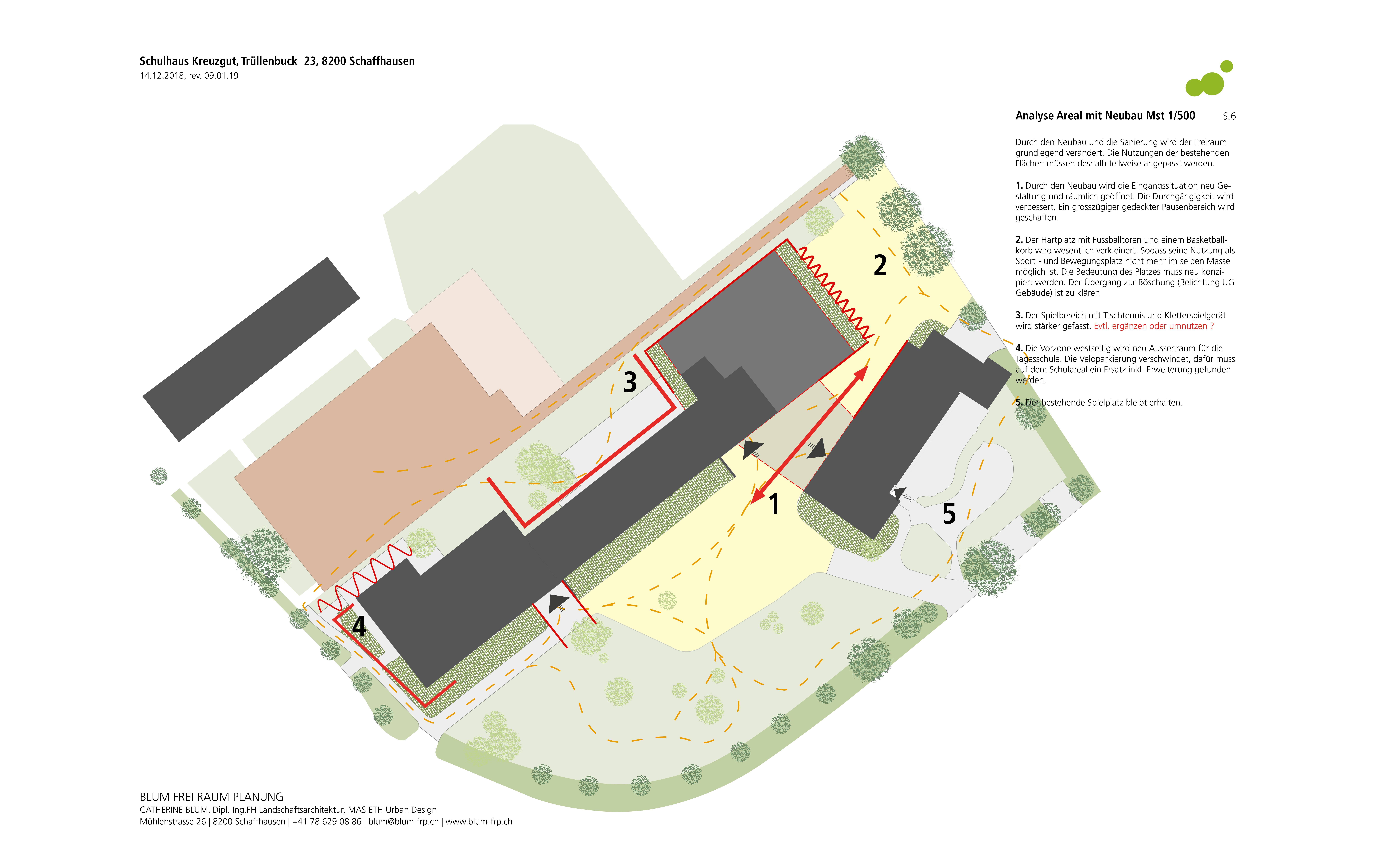 In einem nächsten Schritt erteilte die Bauherrschaft dem Landschaftsarchitekturbüro BLUM FreiRaumPlanung einen Direktauftrag für eine Analyse, Variantenstudie und ein Grobkonzept mit Kostenschätzung (± 25 %).