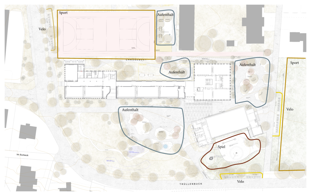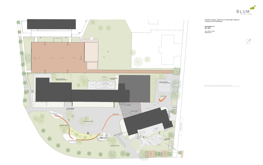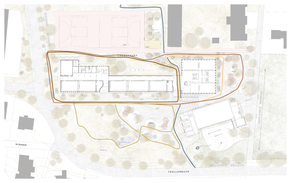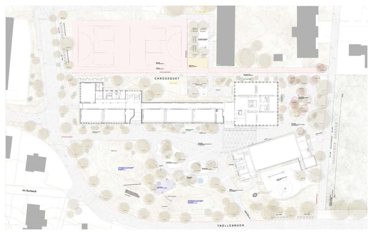 Die Zielsetzungen der Freiraumgestaltung des Schulhauses Kreuzgut wurden vom Hochbauamt in enger Zusammenarbeit mit Grün Schaffhausen bereits zu einem frühen Zeitpunkt definiert: