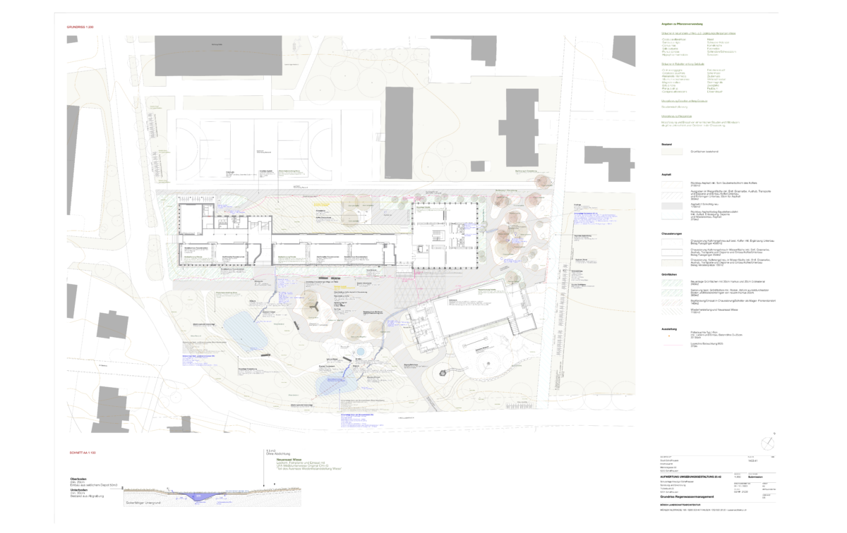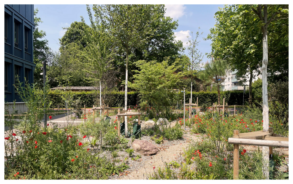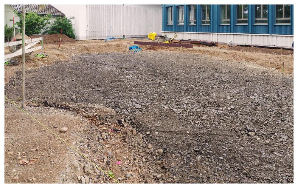 Realisiertes Schwammstadt-Element, Pilotprojekt Schulhaus Kreuzgut