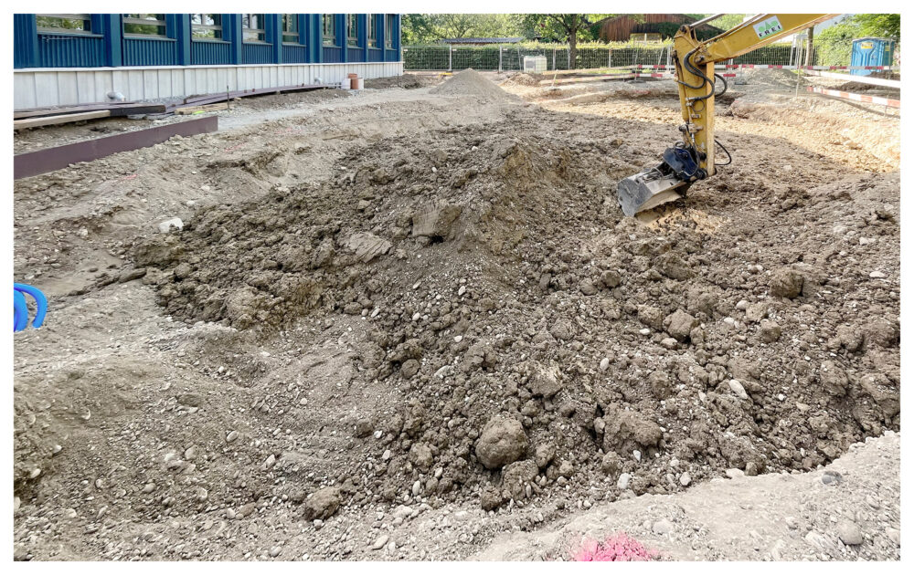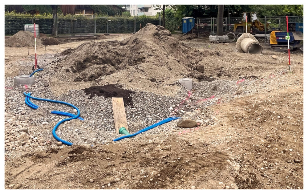 Im Rahmen einer Schulhaussanierung wurden verschiedene Schwammstadt-Elemente geplant, gebaut und getestet. Das Ziel bestand darin, Regenwasser lokal zu versickern, zurückzuhalten und für Pflanzen verfügbar zu machen. Die Dokumentation beleuchtet die planerischen Aspekte sowie die Umsetzung entlang des Planungs- und Bauprozesses (nach SIA 112) und zeigt, wie durch interdisziplinäre Zusammenarbeit, frühe Zieldefinition und gut durchdachte Materialwahl Schwammstadt-Elemente wirksam umgesetzt werden können.