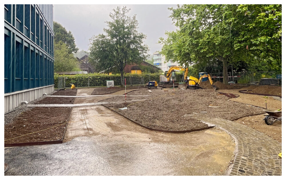 Während des gesamten Planungs- und Bauprozesses begleitete Grün Schaffhausen die Umsetzung aktiv und überprüfte die Einhaltung der definierten Vorgaben. Die enge Zusammenarbeit zwischen Planer:innen und Grün Schaffhausen wurde über die gesamte Projektentwicklung definiert und eingefordert.