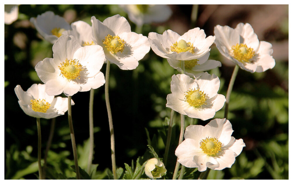 Kleiner Odermennig (Agrimonia eupatoria), Hügel-Windröschen (Anemone sylvestris), Bergaster (Aster amellus), Pfirsichblättrige Glockenblume (Campanula persicifolia), Färber-Ginster (Genista tinctoria), Frühlings-Platterbse (Lathyrus vernus), Grossblütige Königskerze (Verbascum densiflorum)