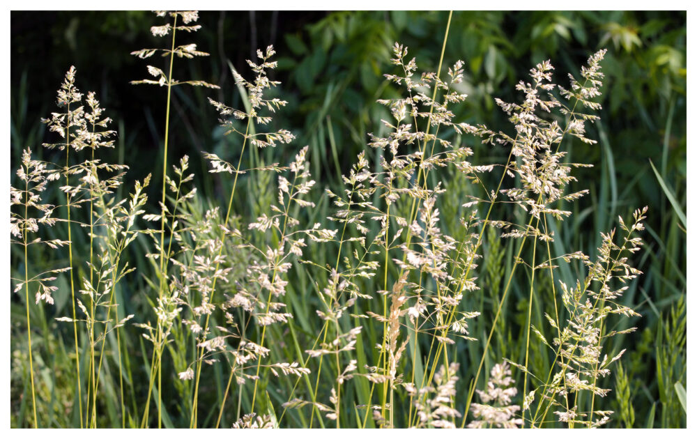 Einjähriges Rispengras (Poa annua), Rotschwingel (Festuca rubra), Schafschwingel (Festuca ovina), Englisches Raygras (Lolium perenne), Wiesenrispe (Poa pratensis)