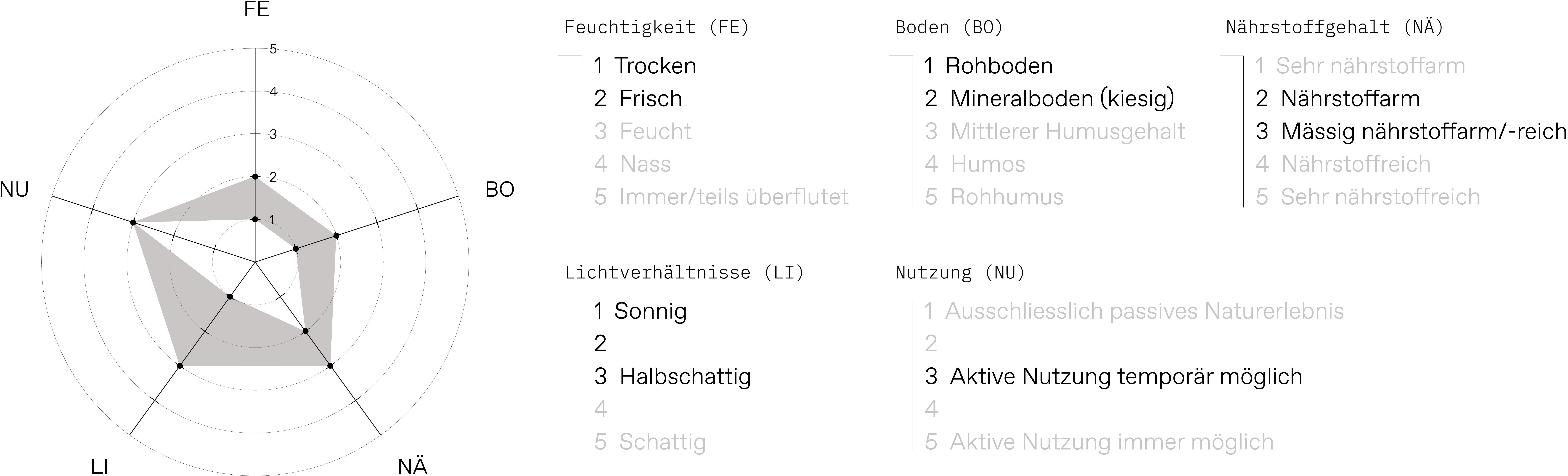 Brack, F., Hagenbuch, R., Wildhaber, T., Henle, C., & Sadlo, F. (2019). Mehr als Grün! – Praxismodule Naturnahe Pflege: Profilkatalog (Grün Stadt Zürich, Hrsg.). ZHAW Zürcher Hochschule für Angewandte Wissenschaften, Forschungsgruppe Freiraummanagement (unveröffentlicht).